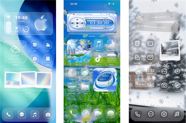全透明小组件是 iScreen 的亮点设计之一,iOS26推出的液态玻璃风格的系统视觉,iScreen作为手机桌面美化领域的头部品牌,第一时间与iOS26系统做了适配,支持任意透明度调节的特性,让照片墙、日历、天气等组件与壁纸无缝融合,打造出悬浮感十足的液态玻璃桌面。无论是 INS 风简约壁纸搭配数字时钟,还是梦幻星空背景叠加透明照片墙,都能轻松实现高级感排版。同时,APP 内海量动态与静态壁纸持续更新,涵盖日系、简约、科技、可爱等多元风格,配合一键换图标功能,用户无需复杂操作就能快速打造统一风格的个性化桌面。