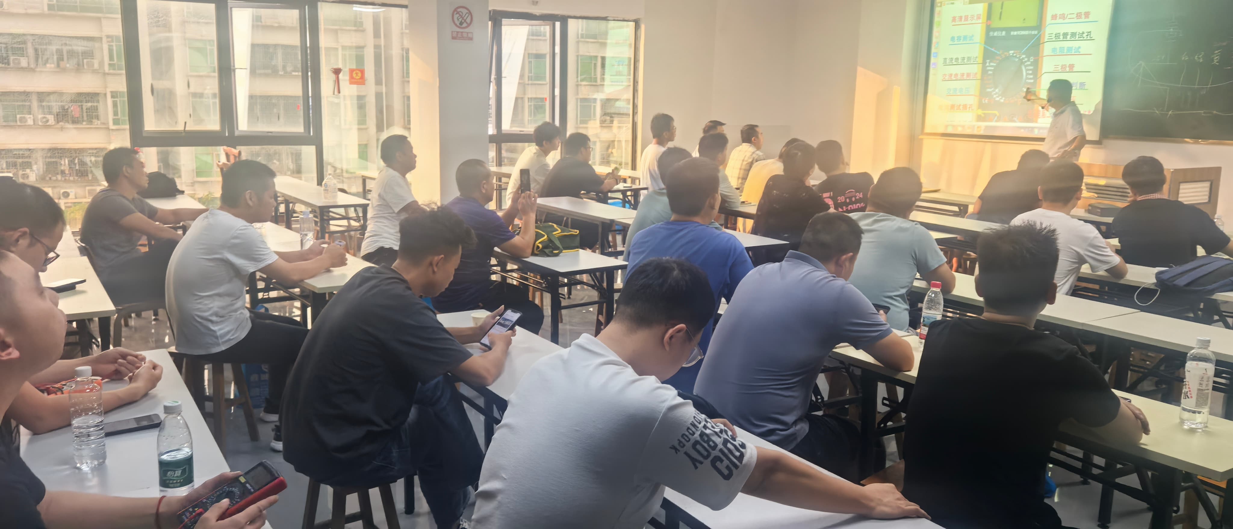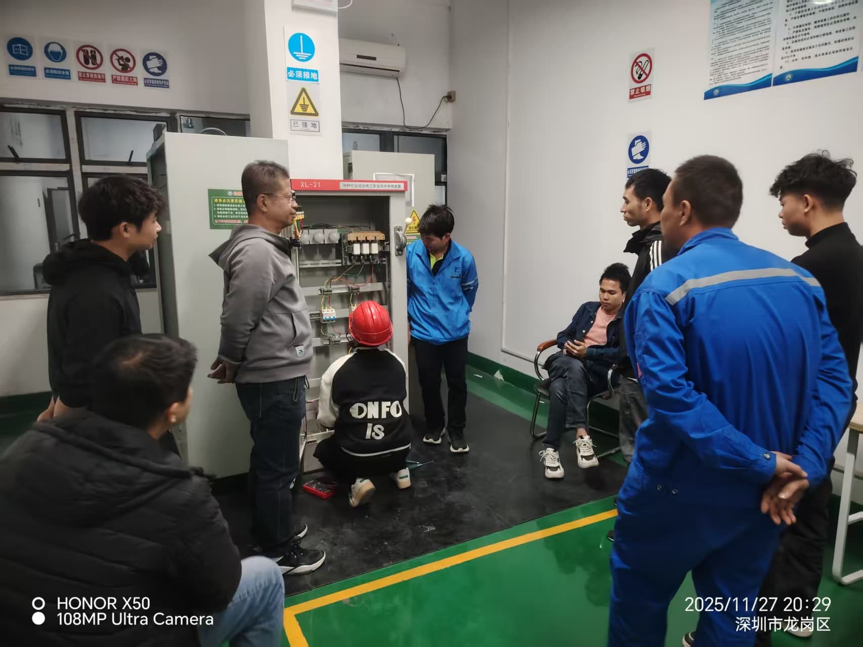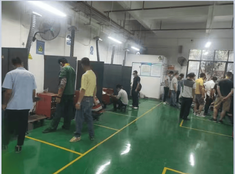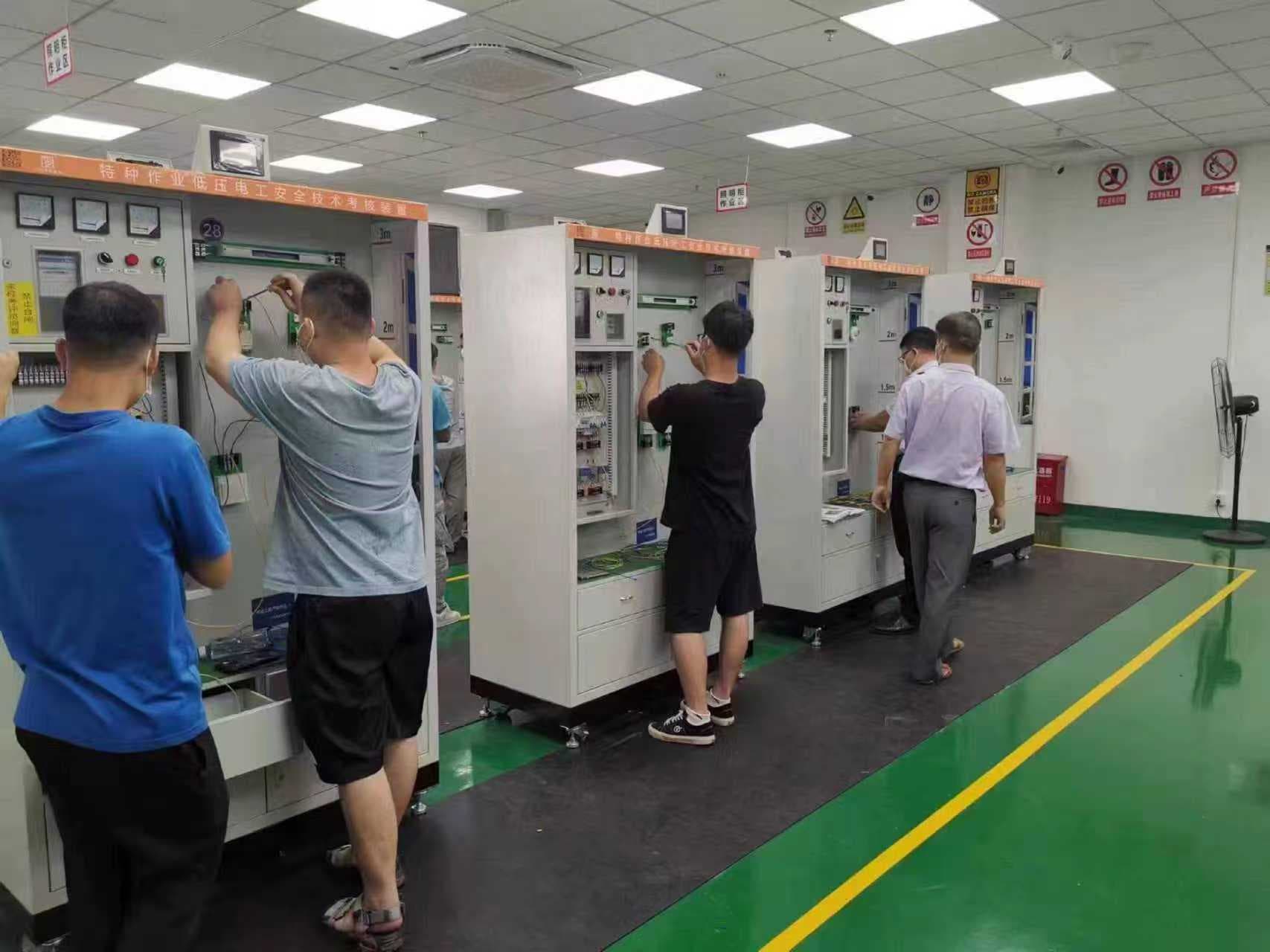 我一进门就看到很多学生围着一部叉车在看,所以我也凑了过去,看到一个老师坐在叉车上给围住的学生一一讲解,看起来真的非常认真,看了一下后我便溜入一间教室,应该有100个左右学生坐在哪里认真听讲,我细听了一下发现他们是在上电工课程,老师非常的投入,学生也认真的的听讲,没有任何的杂音,只有老师一个人的声音在教室回响。我坐了大概15分钟,发现哪里有个门口写了科目三室的教室很多学生在哪里,我又溜了过去,看到他们在围着一台设备在做接线,我找了一个学生偷偷的了解了一下,他说在上电工科目三的课程,理论教室里面哪些是新的电工学员,刚刚考试培训,上理论课的,他们是上一批的学生,现在上的都是实操课程的了,他还说过去一点那个课室还有很多学生在上焊工课程呢!我又跑到门口去看了一下,拍了张照片,因为里面很多强光,所以没有停留太久。